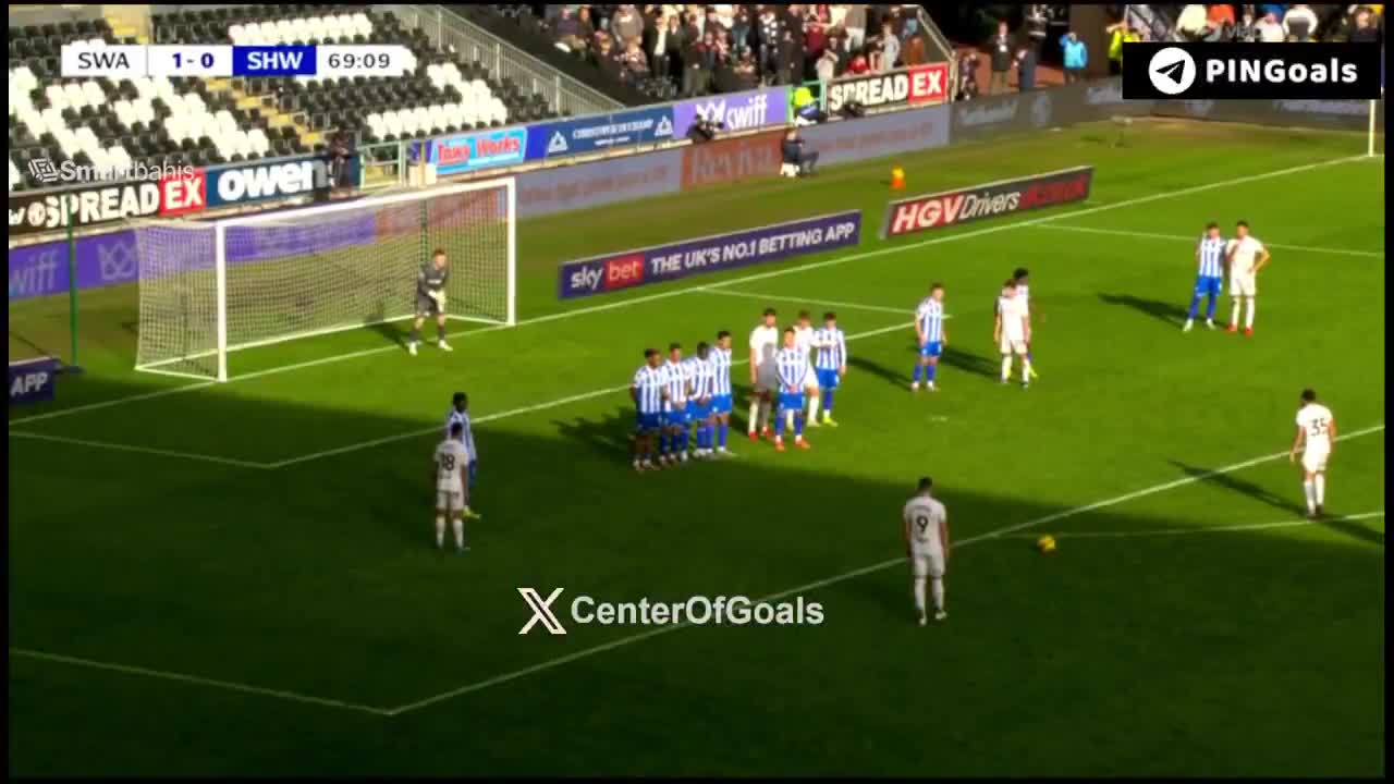 Swansea City 2-0 Sheffield Wednesday - Zan Vipotnik 70' - freekick
